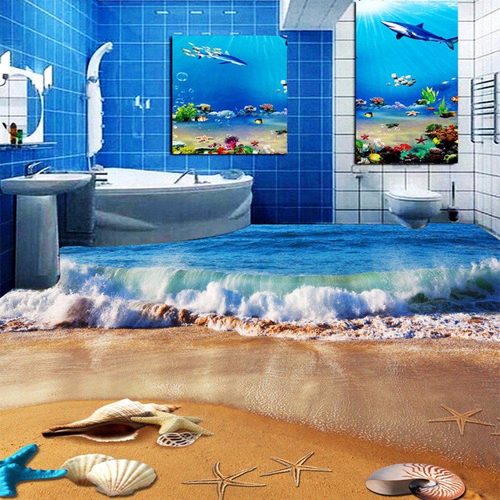 Custom 3d Floor Mural Wallpaper Sea Water Wave Bathroom 3d Floor