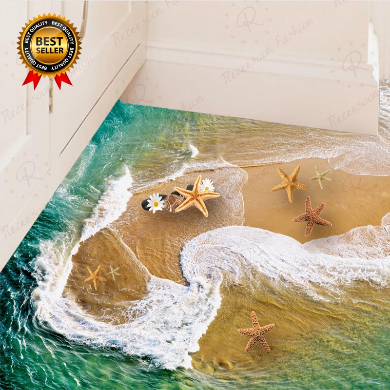 3d Floor Wall Sticker Removable Ocean Beach Starfish Mural Art