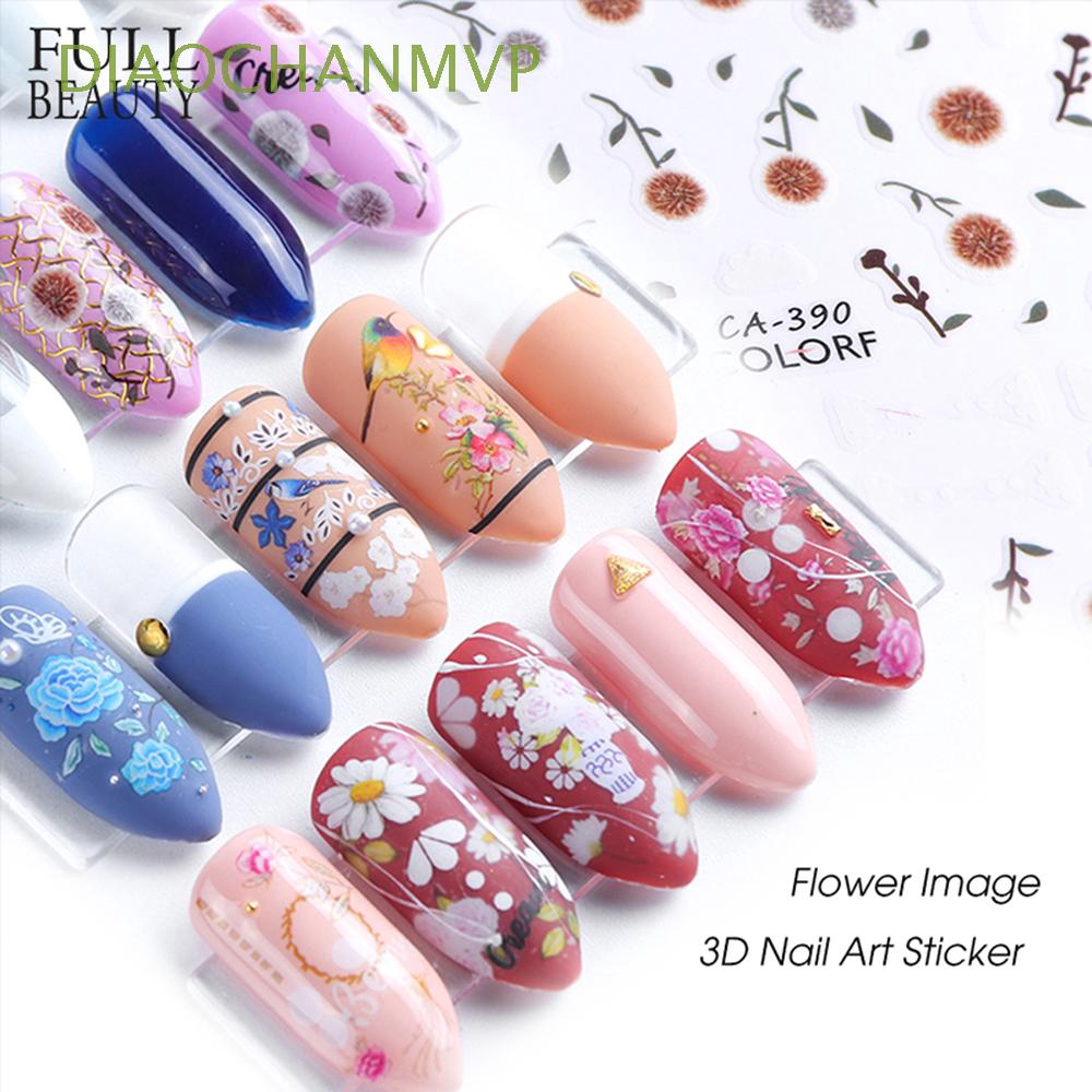New Designs Simple Flower Flora White Blue Nail Stickers Shopee